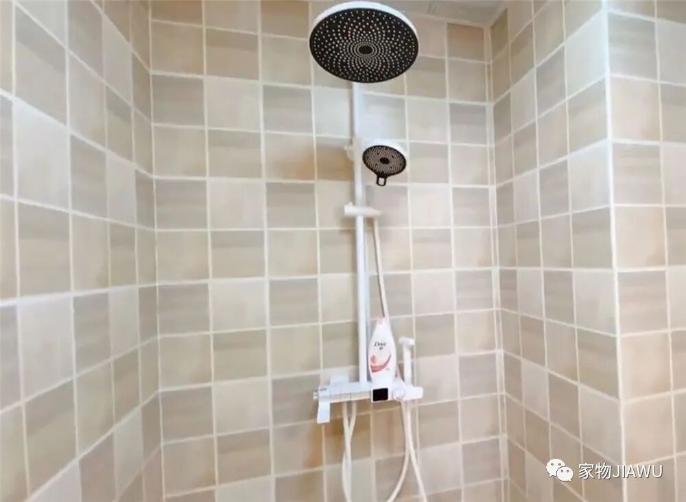 再往里走,一处内凹的空间里刚好安装花洒,当做天然淋浴间,搭配浴帘,能实现不错的干湿分区效果。