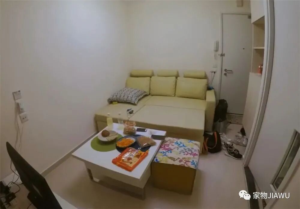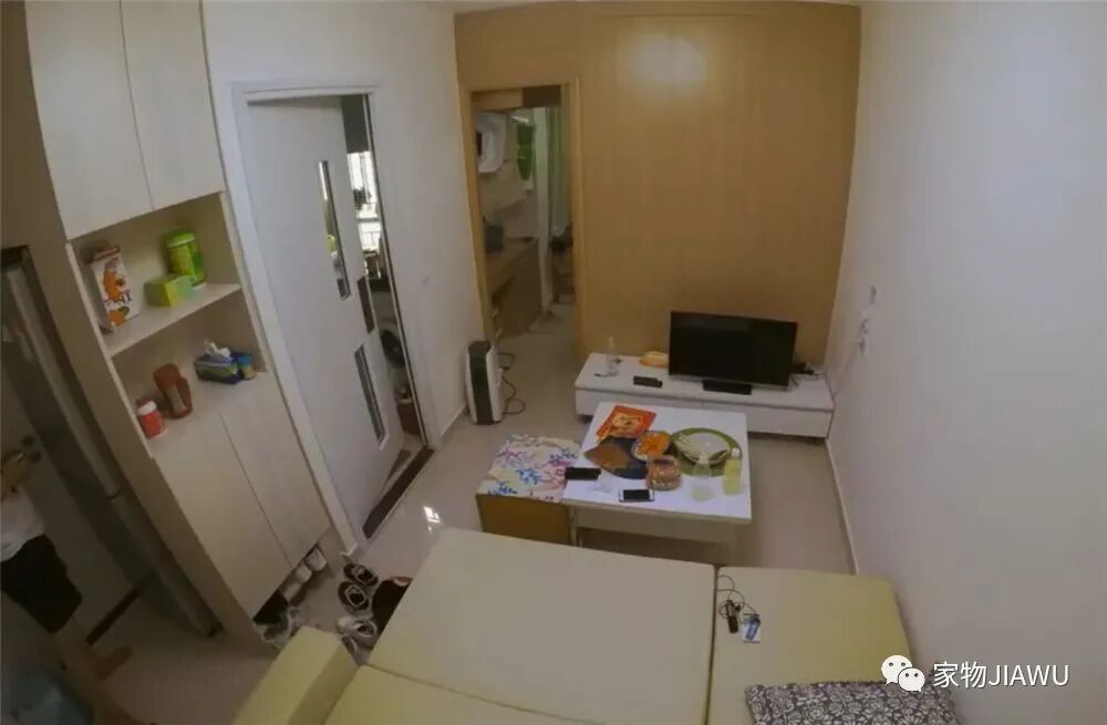 其实,很多这类的纳米楼都是如此,因为要充分利用空间,分隔出更多的“户型”,所以客厅往往不能触及到窗户,而是一间完全依靠灯具照明的“暗室”。
