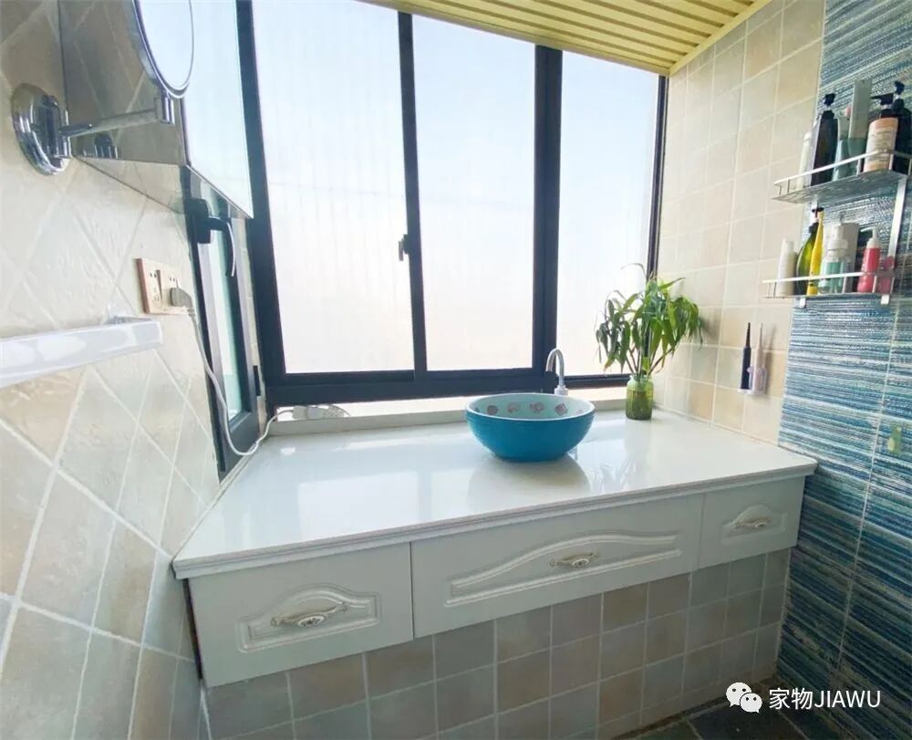 那么,这种卫生间的飘窗真的没有办法利用起来了吗?其实,也有不少人将这有些尴尬的区域巧妙利用起来了。