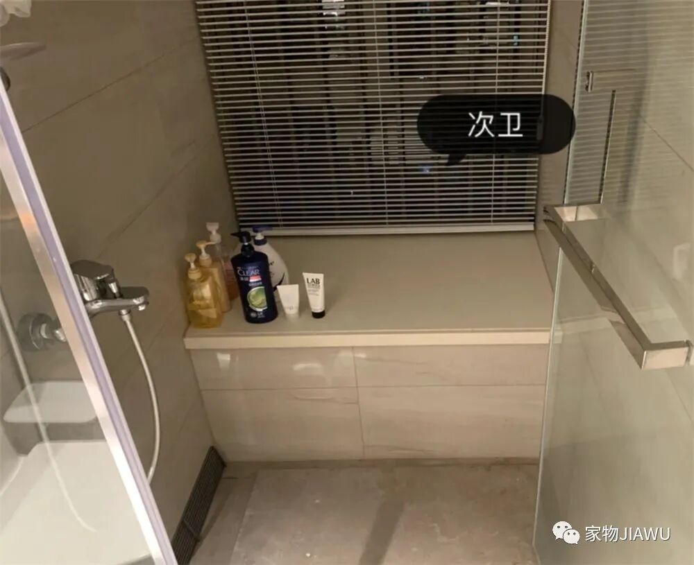 比如这位网友的家,主卫次卫都有飘窗,基本上很难充分利用起来,飘窗上只能沦为置物和随手放置物品的区域。