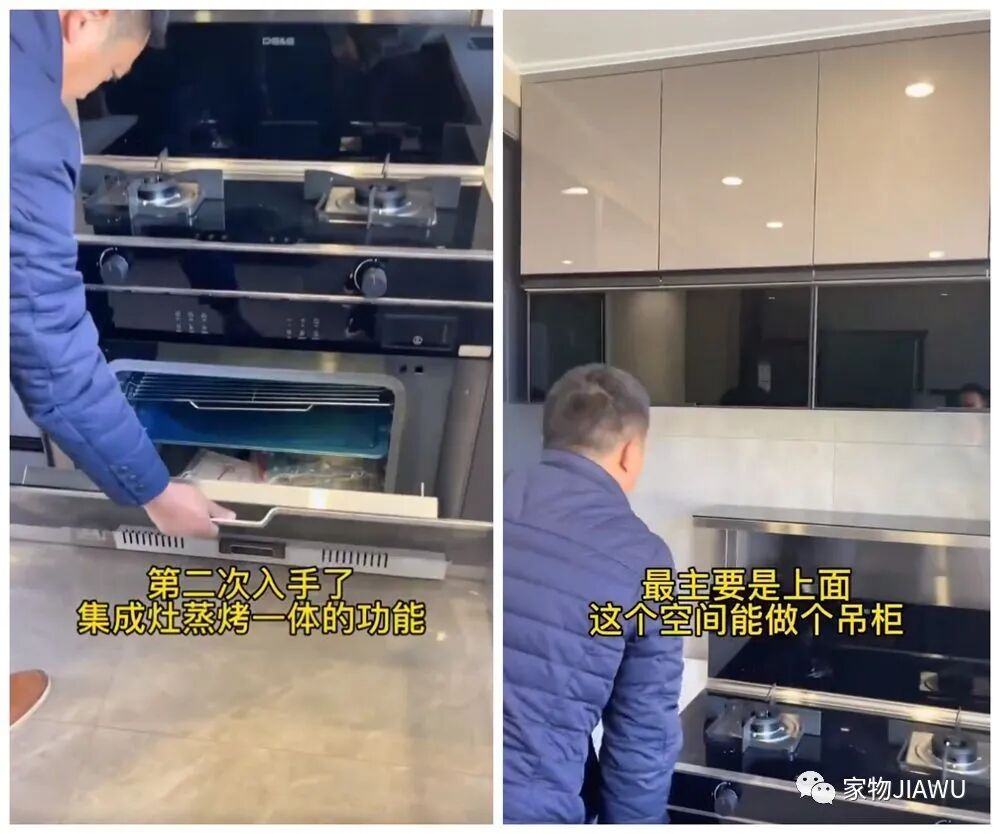 所以,如果厨房重新装修的话,还是建议还上一个一体式的集成灶,解放厨房的纵向空间,上面可以做一组吊柜,丰富收纳区。