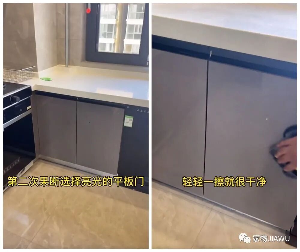 所以,厨房第二次装修,柜门果断重做,选择这种更加光洁的平板柜门,轻轻擦拭就能让它恢复干净整洁,清洁打理顺手多了~