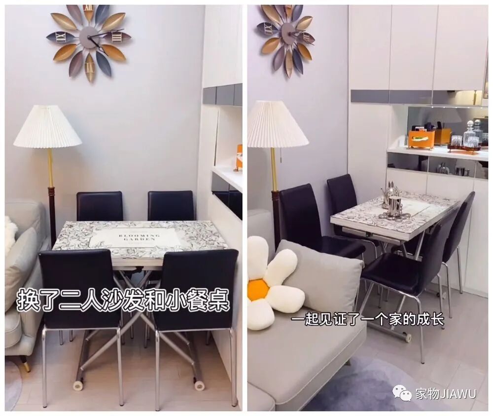 而且不知道大家发现没有,这张小餐桌其实是上下升降式的设计,甚至可以把它当做客厅的茶几使用!