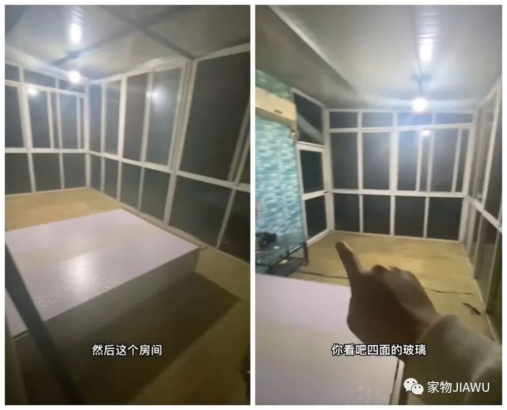 打开灯以后,惊奇地发现这个小房子里四面都有窗户,但一扇扇窗户的框架,却仿佛是栏杆一般,显得有些奇怪,难怪这位老哥称其为“纯狱风”了。