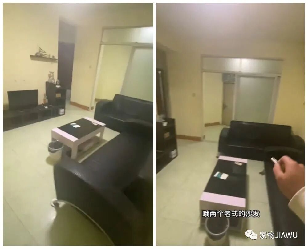 在昏暗的灯光下,我们可以看到整个客厅的空间里,根本看不到窗户,即便是外面有个小阳台,也是用小推拉门封闭了起来,看上去非常憋屈。