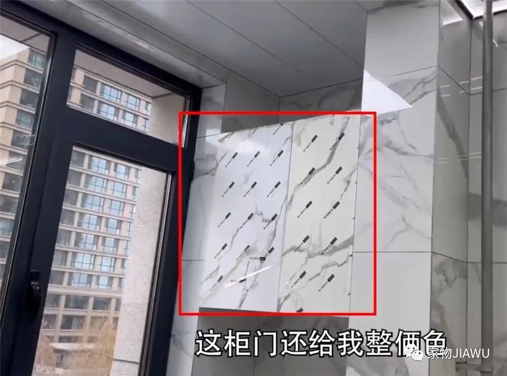 最后,阳台的柜门板也是这种大理石纹,关键还有色差……只能说,这位姑娘可是被坑惨了!