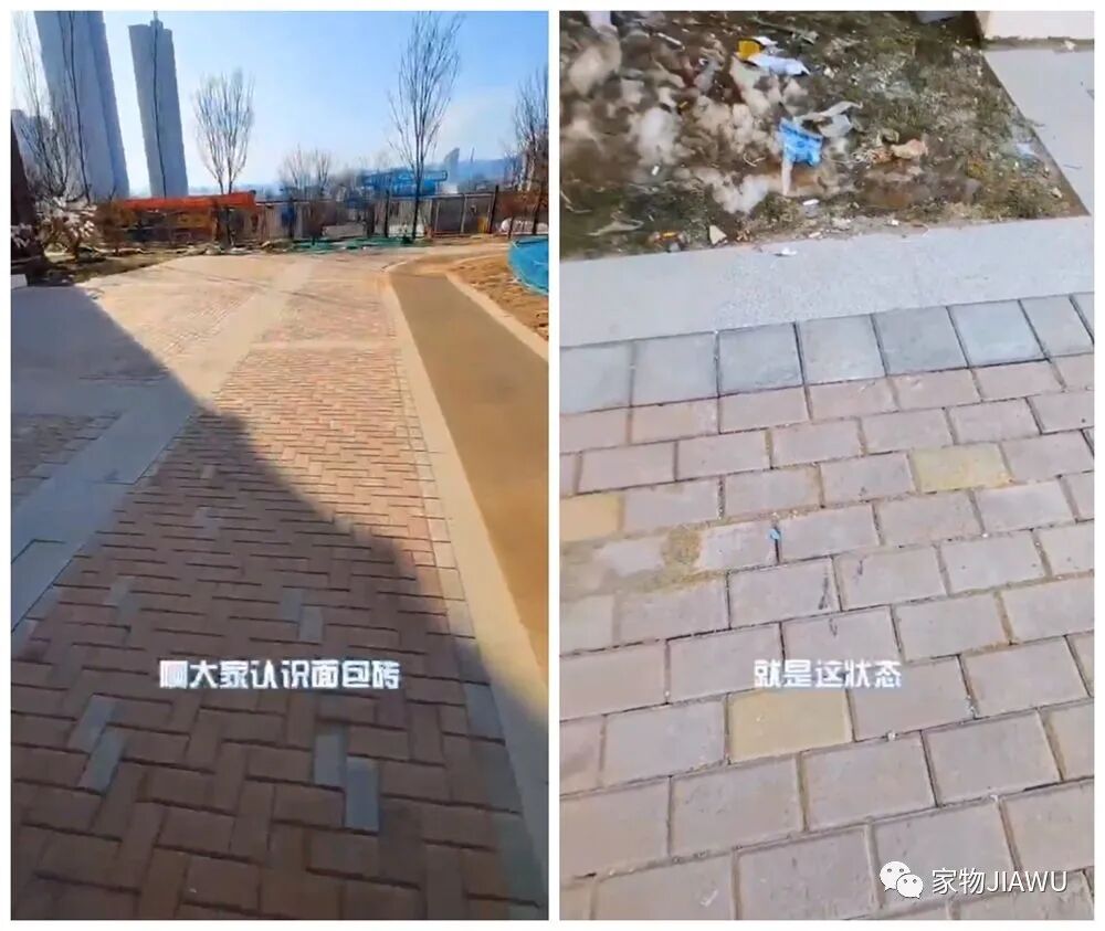 地面用一块块的面包砖铺设,虽然没什么质感,但如果铺得好的话,也能说得过去,可偏偏事与愿违……
