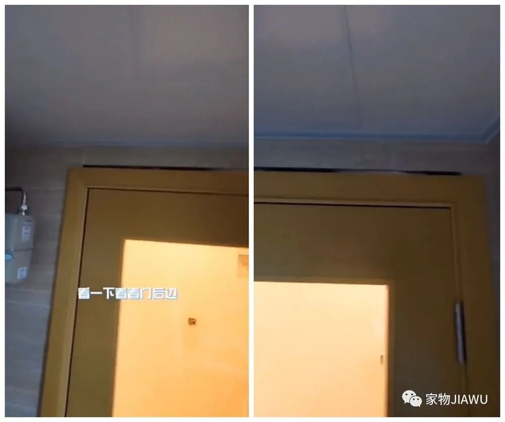 同样是厨房门后面,门框上的缝隙甚至能塞下小拇指尖,就不说美不美观、漏不漏风,就这安全性方面就有待商榷。