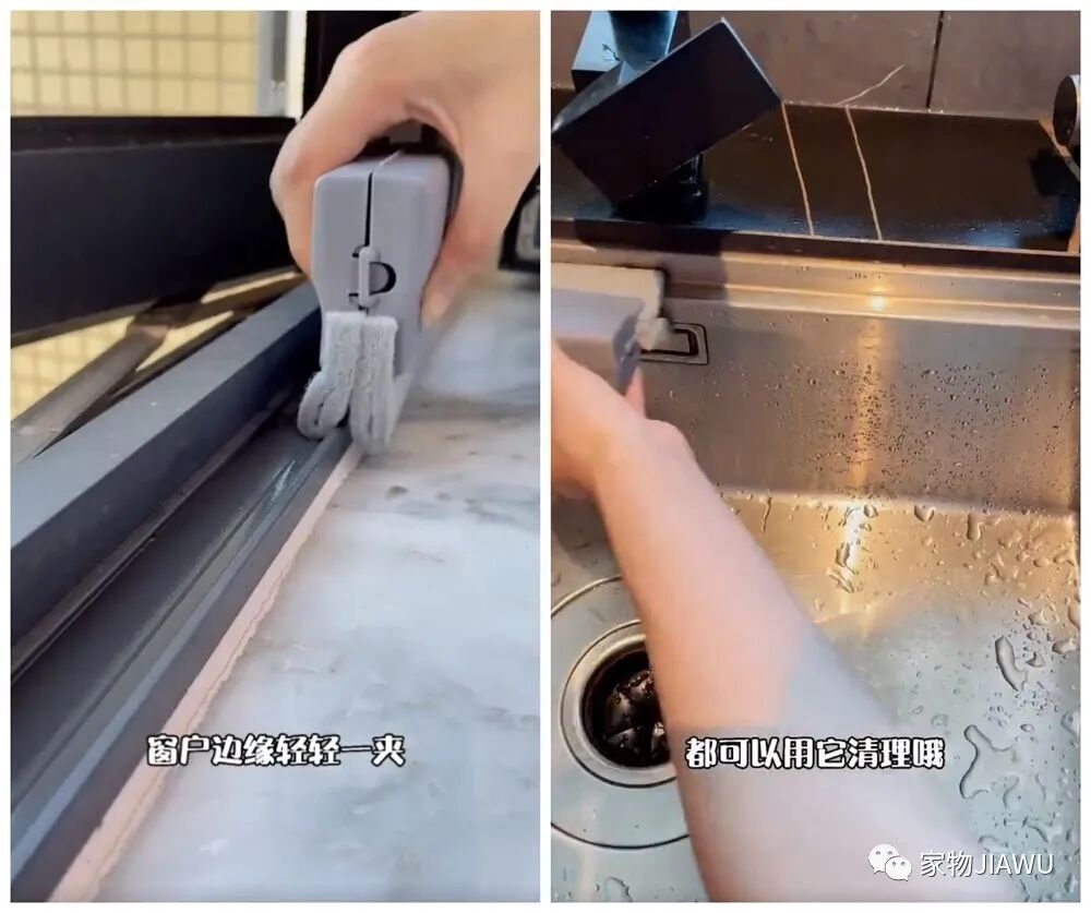 无论是狭窄的窗框,还是无从下手的水槽边缘、镜子缝隙,都可以快速搞定,真的是清洁神器!
