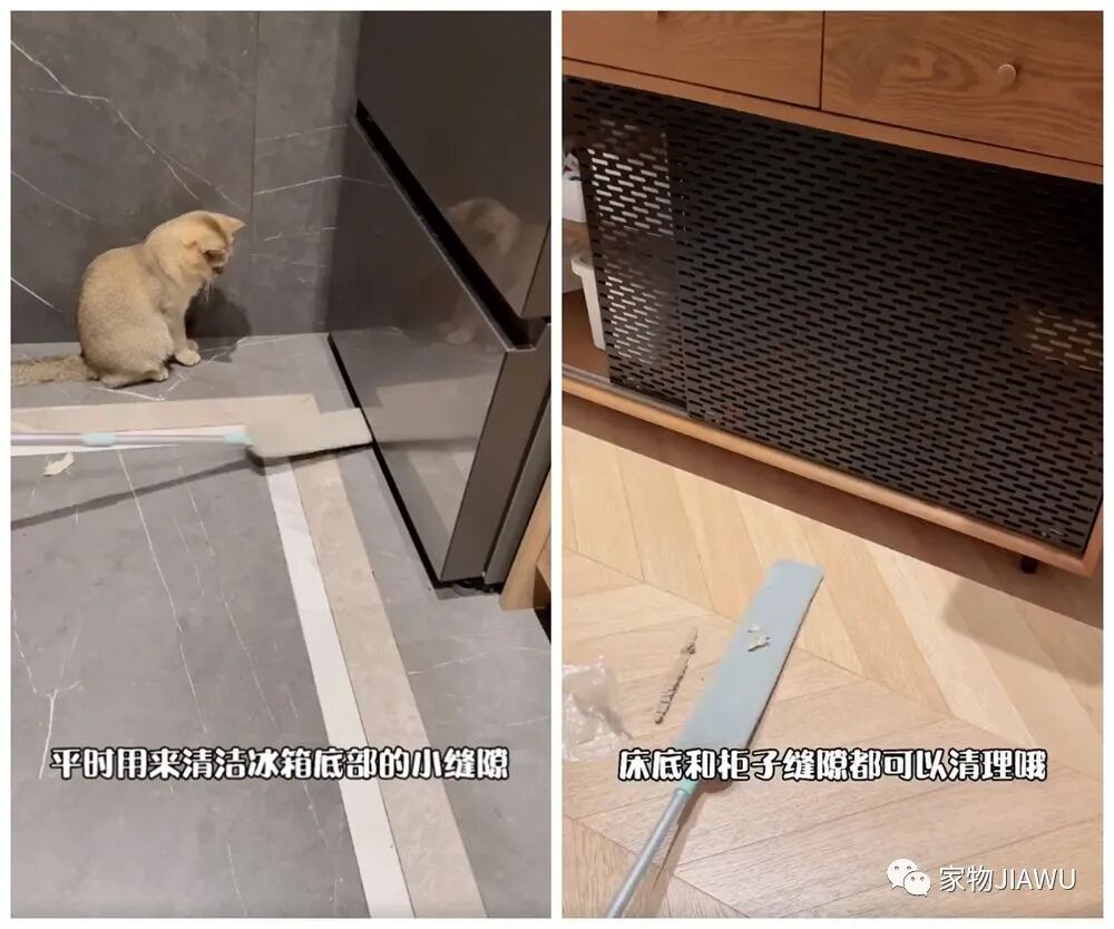 像是冰箱底部的小缝隙、矮柜、矮脚沙发、矮脚床下面的缝隙,都可以轻松清理干净,不用搬挪家具哦~