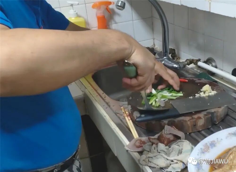 做饭的时候,只好挤在这样一张菜板上,确实是有些憋屈,不过比很多劏房来说已经是要好上很多了。