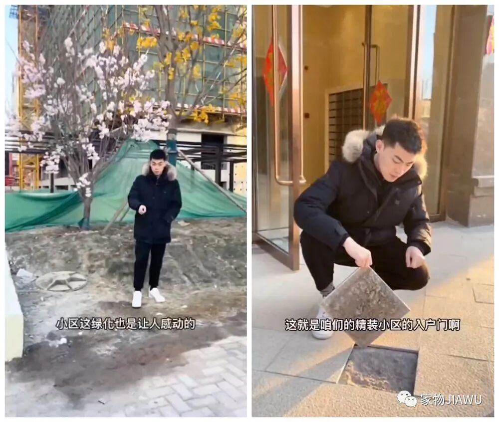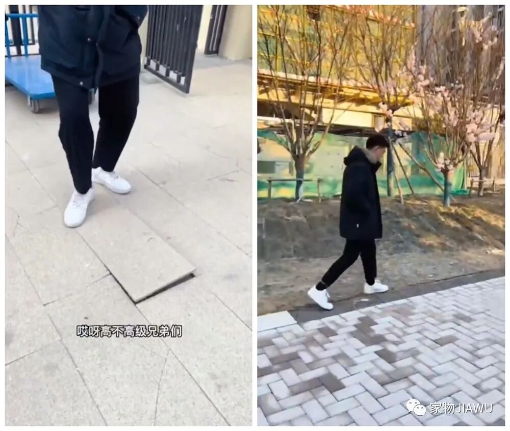 还没进房子里,小区院里的各种场景就让这位老哥颇感无奈,进入小区院中,很多地板石都起翘、裂开了,甚至还有很多地方没有铺全。