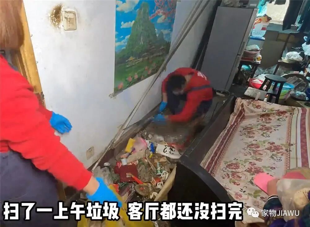 简单查看了情况后,几位保洁师开始了清理打扫,但他们远远低估了这次打扫的工程量,一上午甚至都没打扫完。