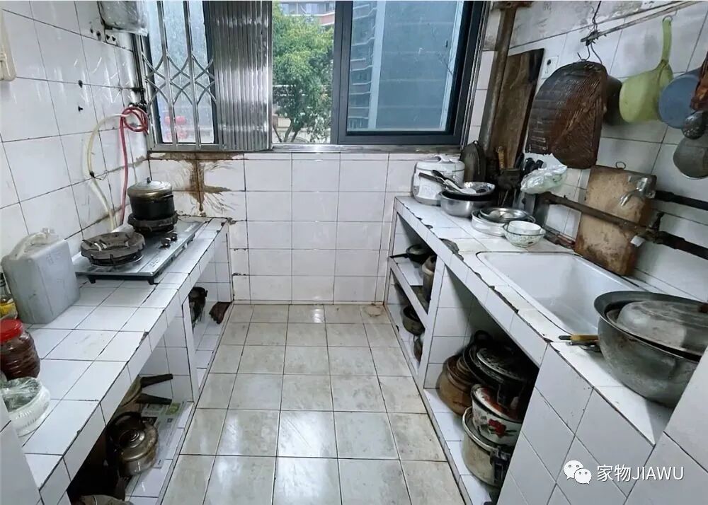 厨房里面,长时间积累的油污和水渍,真的让人感觉挺别扭的,后面几位保洁师也是在这里耗费了很多的时间,将瓷砖灶台的台面尽可能擦干净,但由于地面长时间被油污水渍侵蚀,釉面早已破损,只能尽力清理到这个样子了……