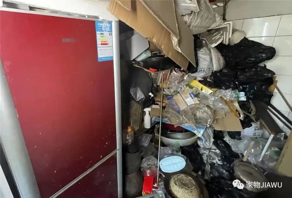 尤其是冰箱旁边,垃圾一直从地板堆到天花板——是真正意义地堆到天花板上,再发展下去,或许连冰箱门都打不开了。