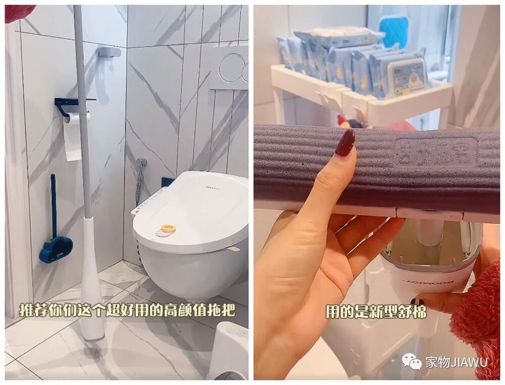 这个设计简约、颜值超高的拖把也比较推荐,首先它杆子很长,清洁地面和死角的时候能更加轻松一些,其次清洁海绵用得是这种超柔软的材质,拖地清理的清洁效果很不错。