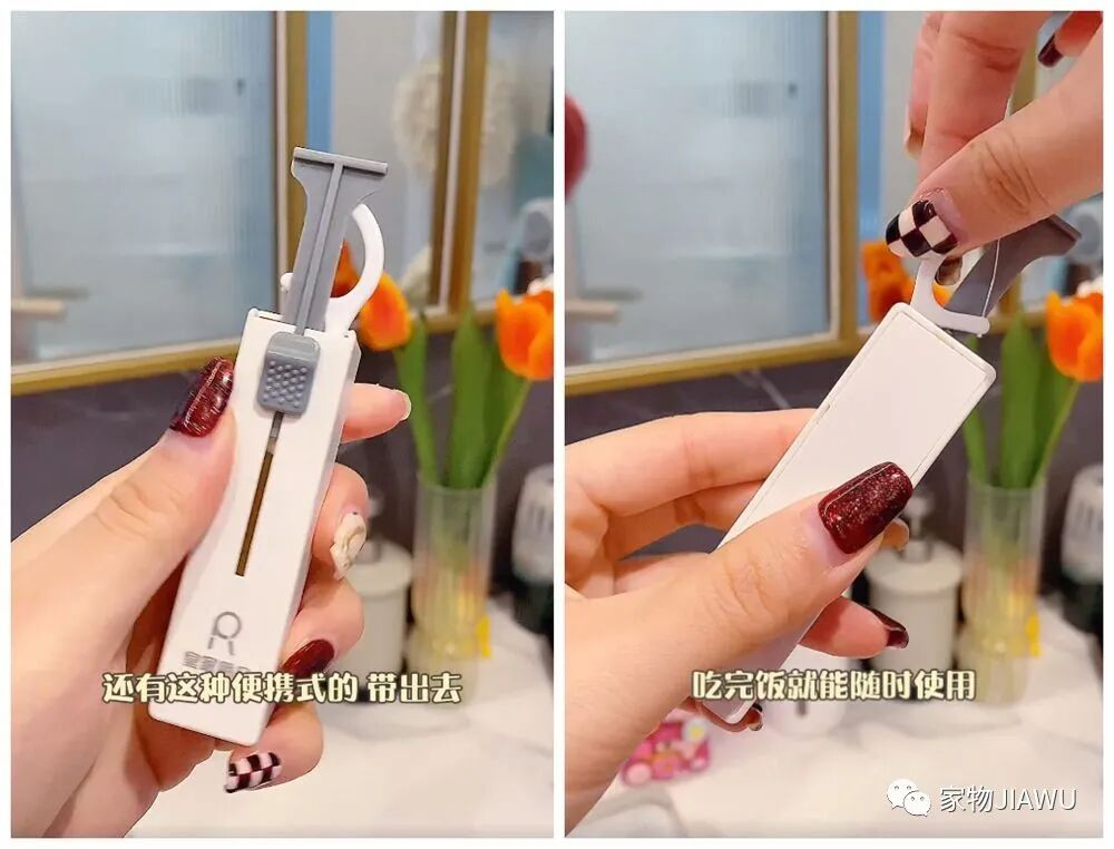 哦对,还有这种便携式的牙线盒,可以随身携带,在外面吃完饭就能随手拿出来使用,也是个很不错的小东西,同样给大家推荐一下~