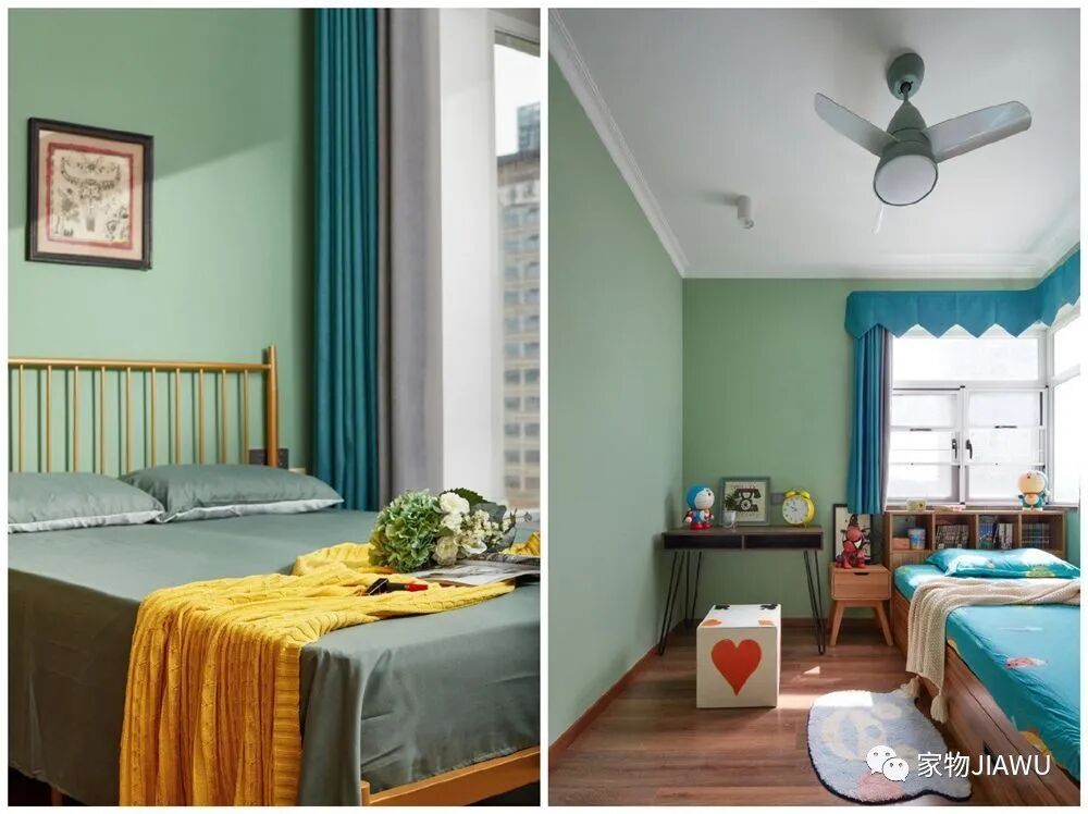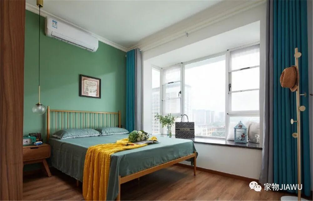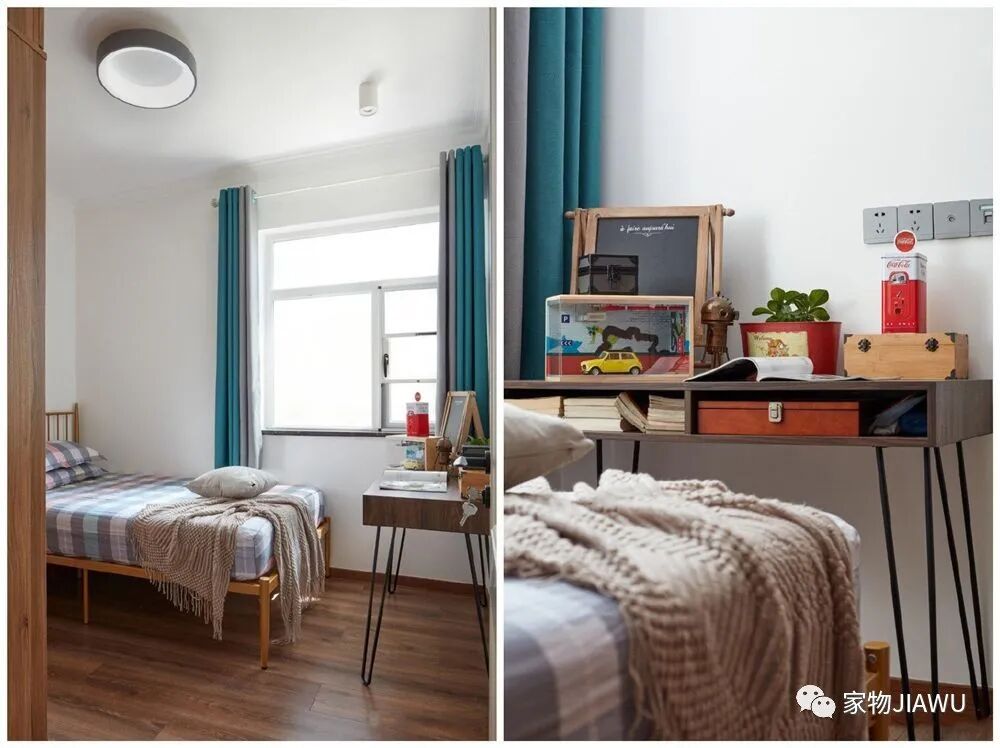 最后,家里的卧室区域分为三处,当然,由于原本面积就只有85㎡,所以卧室的空间自然也不会很大,其中面积最大的自然是主卧,用铜色的床架,带来几分复古感。