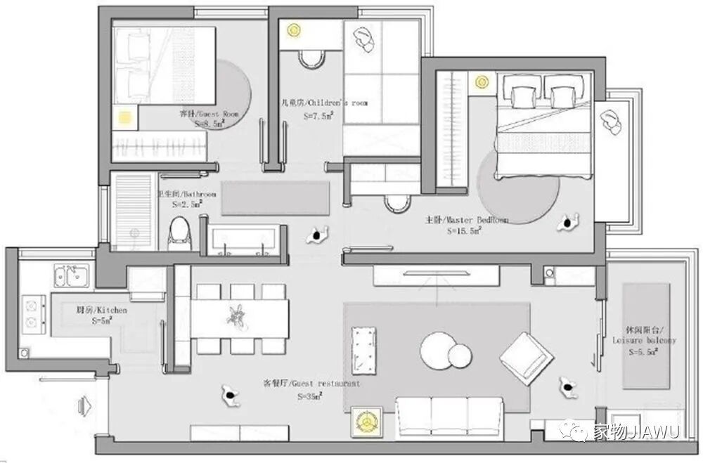 先来看看户型图,其实仔细观察,可以发现户型还是不错的。