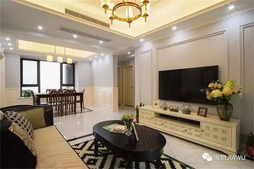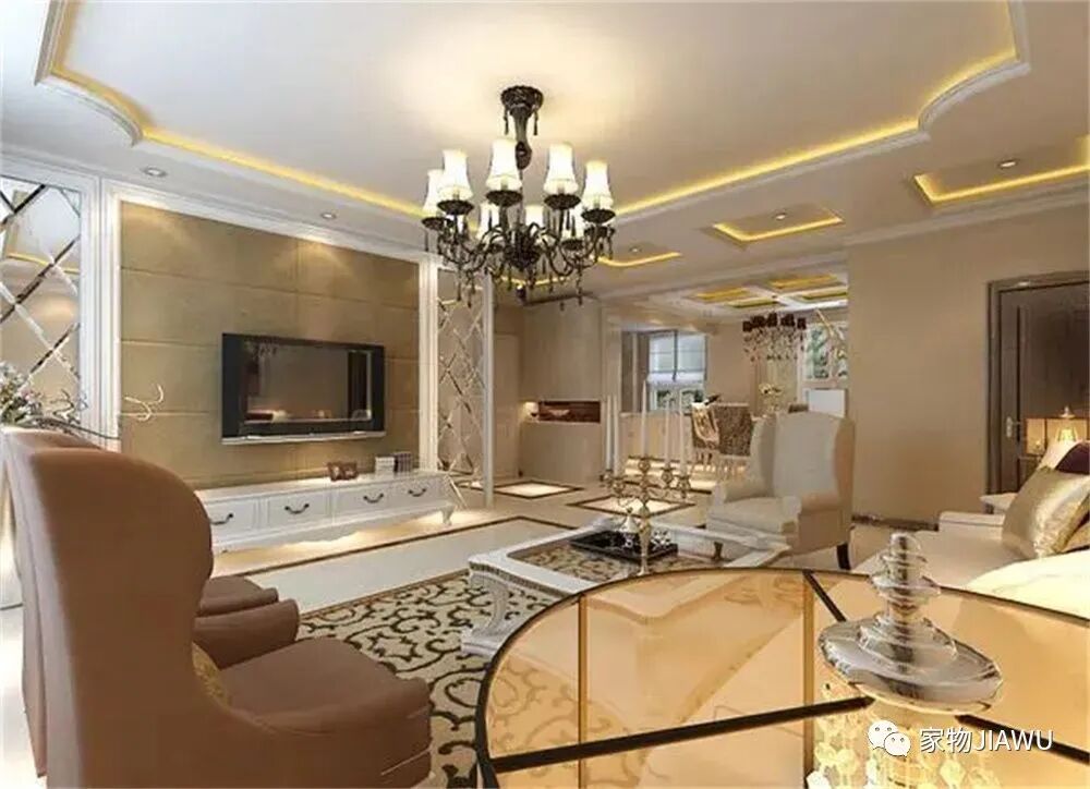 这个现在其实大家都在说,我也简单说一下,大家可以看看一些十几年前的“豪华”装修,是不是都是那种复杂的软包背景墙、一层层的吊顶?哦对,还有吊灯。