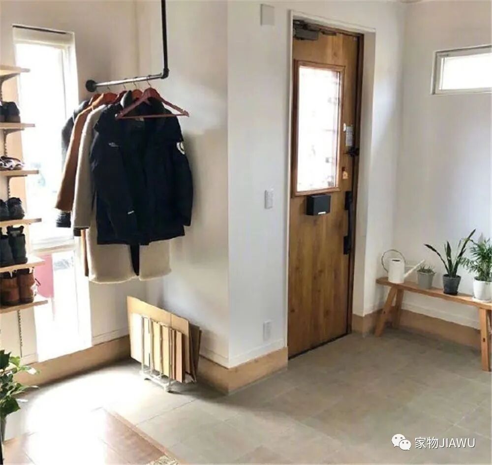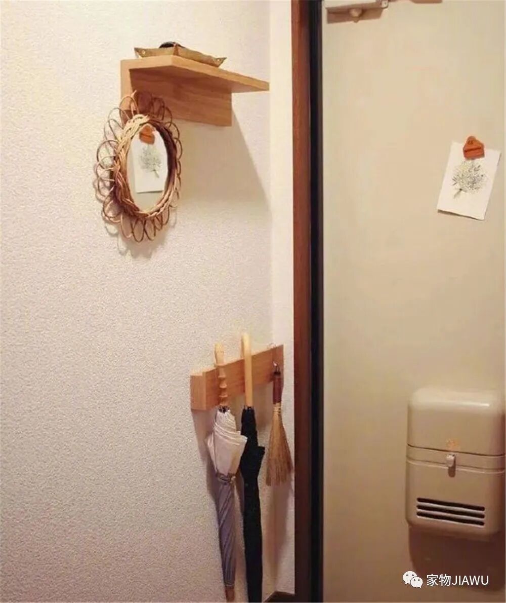 比如在门后,可以安装墙面挂架或者雨伞架,以此来提升收纳能力,也可以在门后安装鞋架,充分利用起纵向空间,这些操作往往连1㎡都用不到。