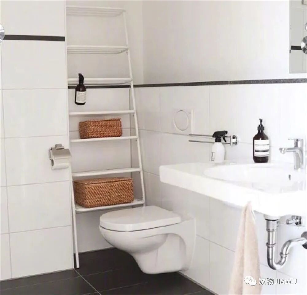一些特殊的户型中,我们也别放弃这1㎡或更小的空间,尽量利用收纳架和墙龛,来增加卫生间内的收纳能力,你会发现卫生间的整洁度好很多。