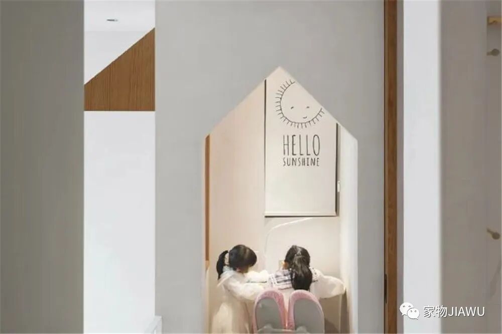 二楼的儿童卧室,也延续了这种开放式空间布局的设计,为什么说这套房子是一套“亲子风”的住宅呢?其实从儿童房内的陈设也能略窥一二。