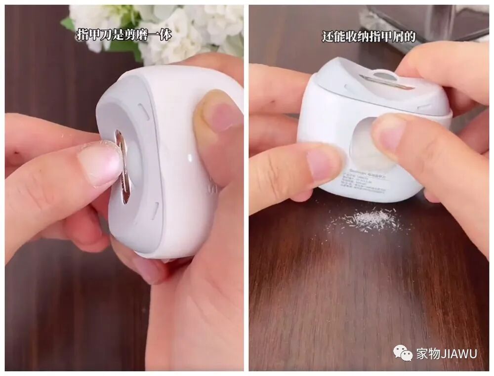 最后,就是这个自动式的指甲刀了,它能自动剪、磨指甲,内部还有收纳指甲的容器,用过后倒出即可,小小的设计很贴心!