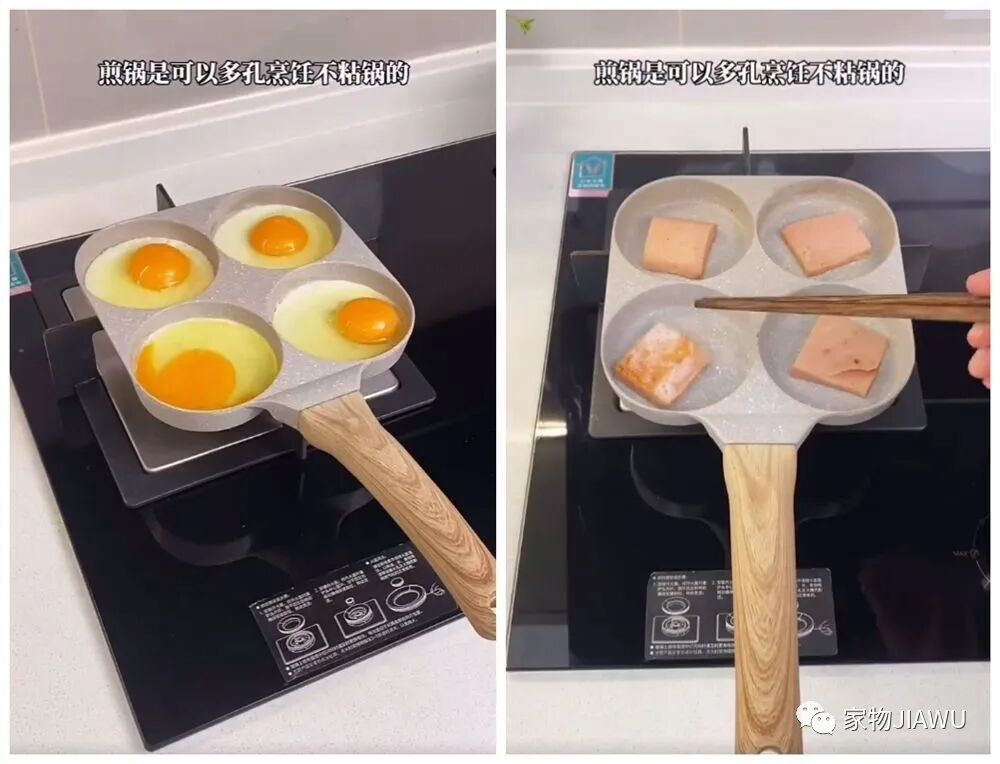 接下来是这个可爱的小煎锅,多孔的设计可以分别用来煎蛋、煎香肠,同时还能保证煎蛋的造型,总之也算是个颜值高又好用的小物件~