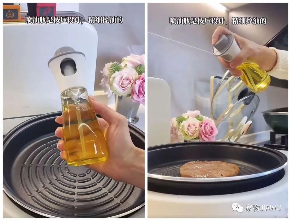 大家也都知道,在煎肉的时候其实很难控制油量,多的话会太过油腻,少的话又会容易焦糊,这时候这只喷油壶就能派上用场了,它能精准控制油量,用起来很顺手。