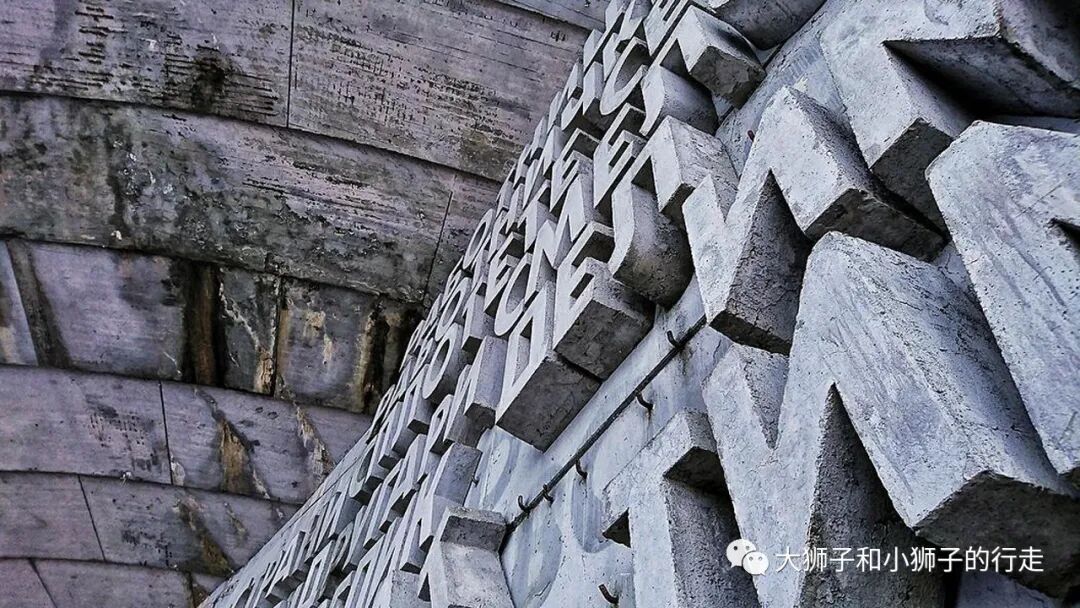 另外,它的正门用巨大的混凝土文字写着:“起来,饥寒交迫的奴隶,起来,全世界受苦的人!“