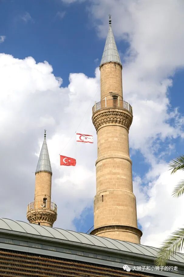 好吧,反正尼科西亚这道“塞浦路斯的柏林墙”已既成事实,土耳其算是在本土之外硬造了一个“国家”——我登上尼科西亚城市南部的高塔时,能看到北边山上大大的“北塞浦路斯土耳其共和国”的“国旗”,它跟土耳其国旗的图案完全一样,只是红与白的颜色是相反的。