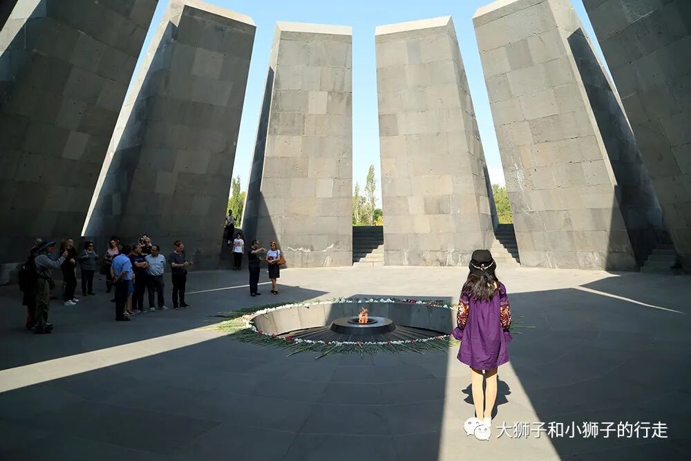 老非我去参观时,能看见不少亚美尼亚人表情肃穆地走进纪念碑,慢慢把手上拿着的一支鲜花,放在长明火圆形的基座周围。