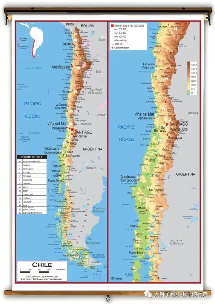 其一,一半是智利全国地图,一半是细节放大图,放在一起对仗工整,好看!