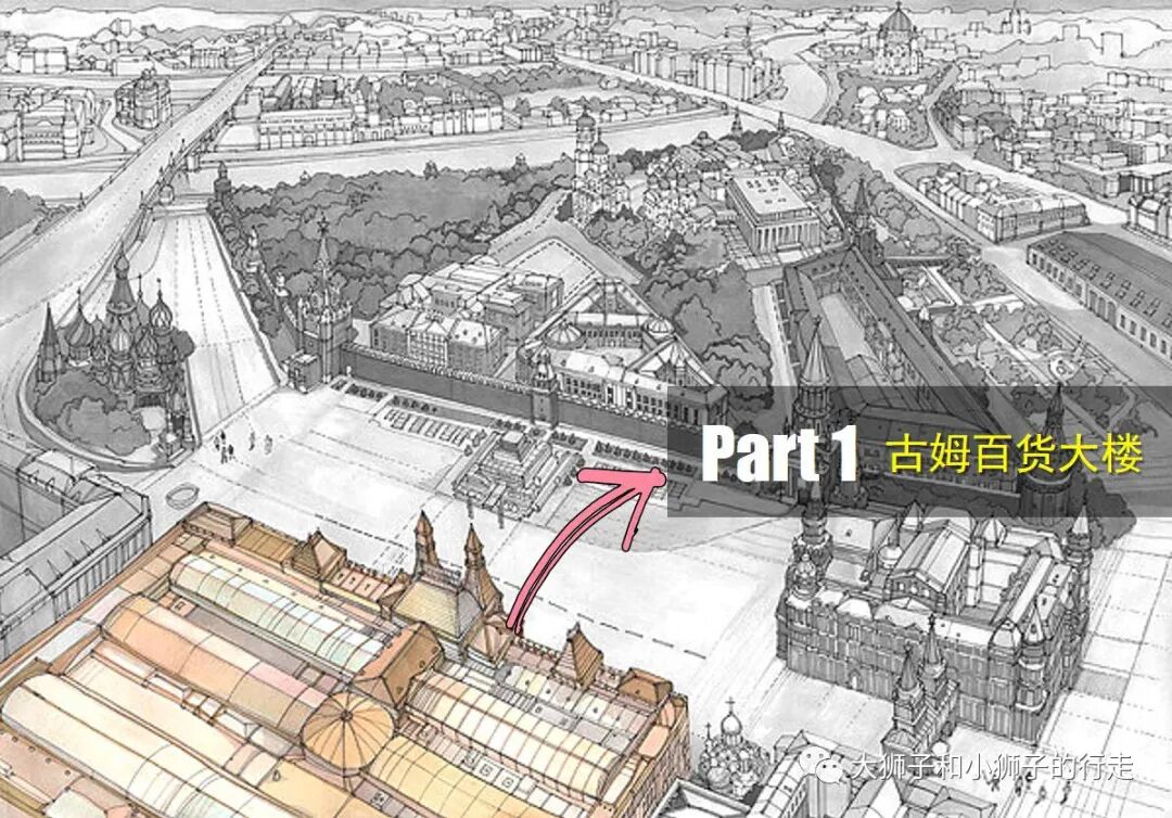 从上图中你也能看出来,位于红场东侧的古姆百货大楼,在红场上拥有很长的延展面,所以它肯定会有若干个入口。