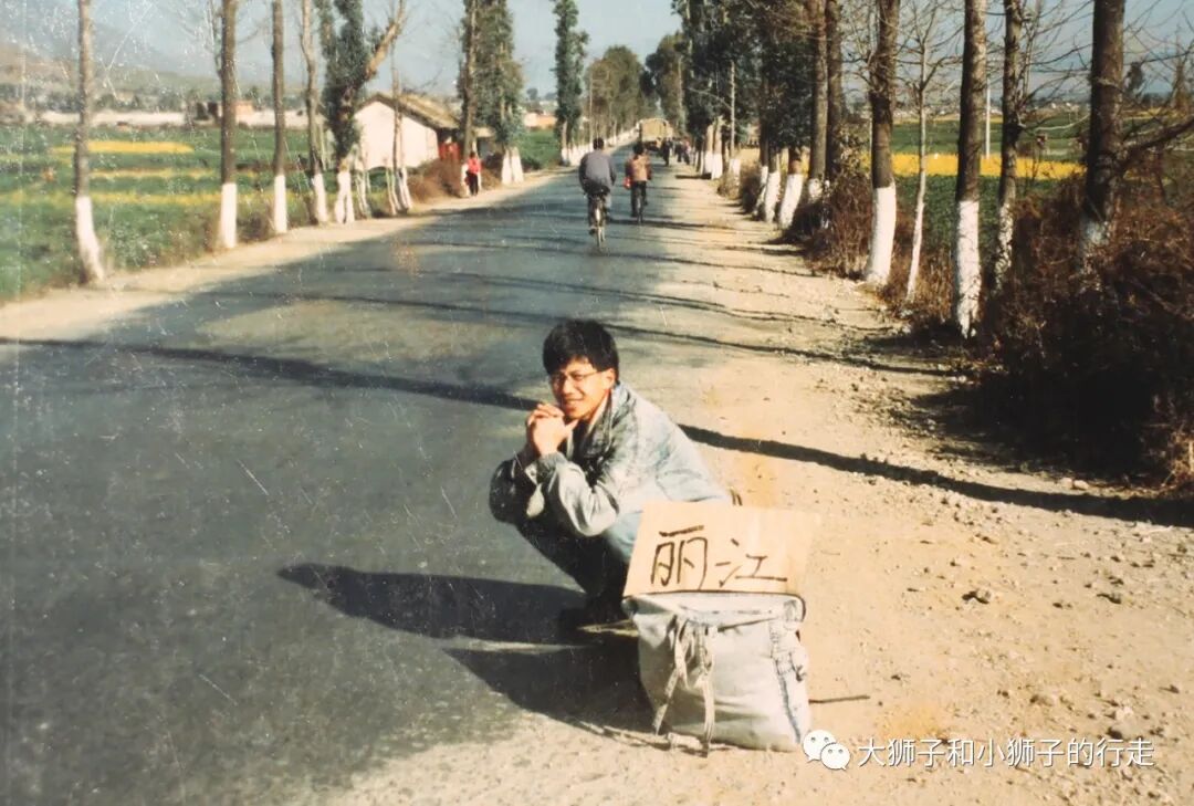 在大理的喜洲画完画之后,我到公路边准备搭公共大巴去丽江。索性找了一张硬纸壳,用烟屁股蘸着颜料,写上了自己要去的目的地。