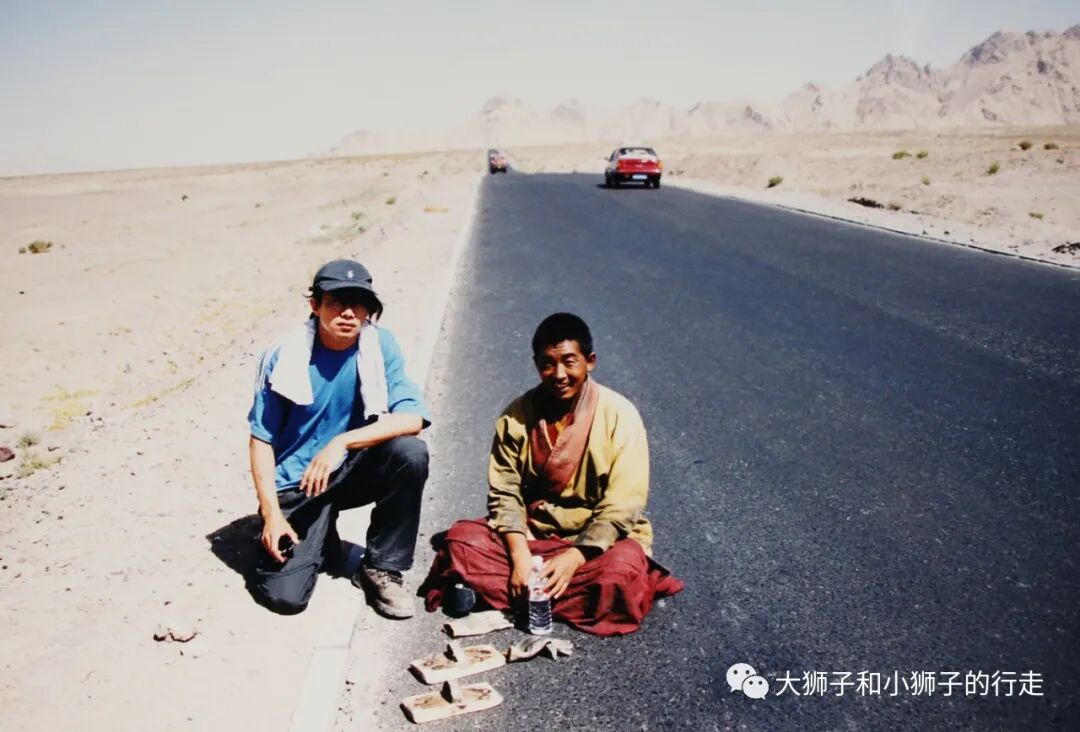这是我在青藏线上遇见磕长头朝圣的藏人,跟他聊了很长时间之后的一张合影。