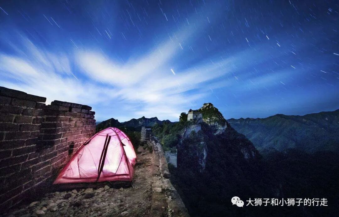 穷游妹子的装备很齐全,自己挑了一个避风的烽火台露营,只需从垛口望出去,就能看见蜿蜒长城的日出日落。