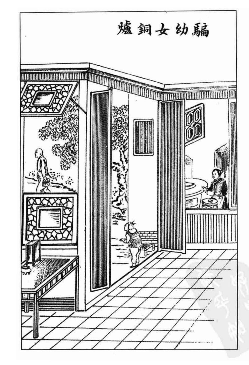 有一年冬天,乡下有位老妇人要下厨房去做饭。她让五六岁的小孙女看着门外的稻场,并给了她一个铜炉暖脚。