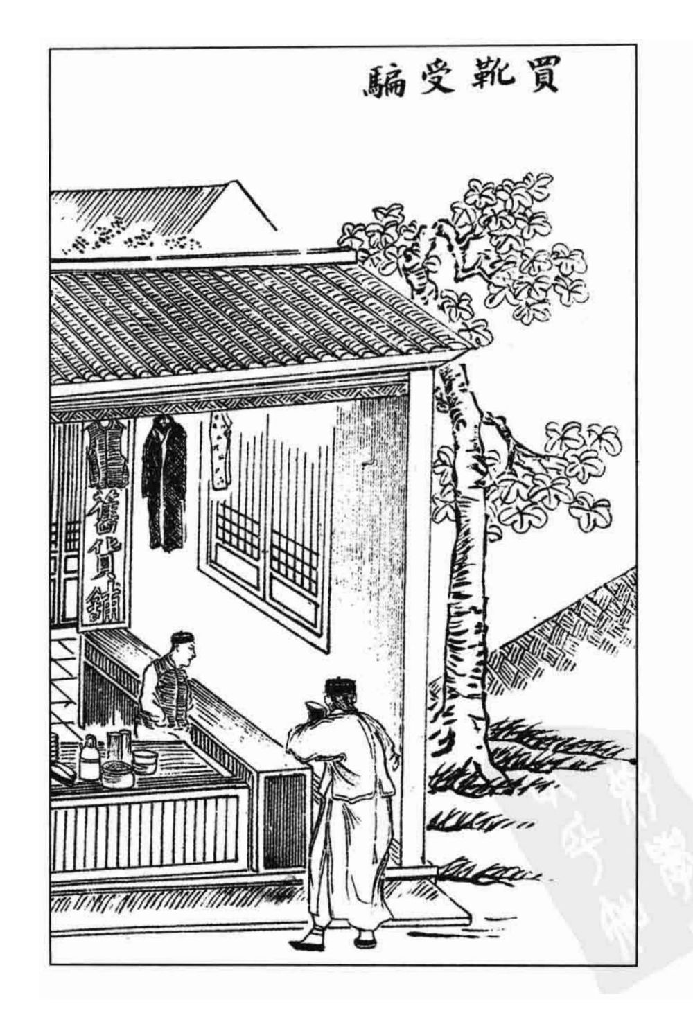 揭秘:两个店铺互相串通,把一汉靴子分别放在两个铺子里,前后要价不一样,前面的便宜而后面的昂贵。买的人用昂贵的价钱仅买了一只靴子。此骗术是伙骗者利用买靴人贪图便宜的心理,投机行骗。