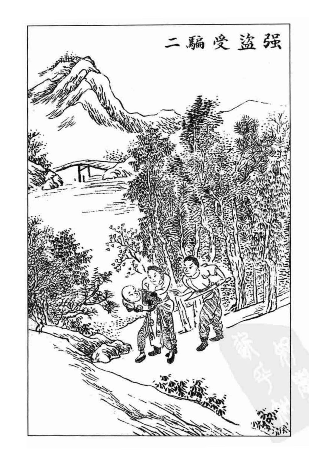 有个广东的商人在上海做生意,他的妻儿没跟他住在一起。有一年年底,事情繁多,他到深夜才回家。路上有人要打劫他的衣服。商人哀求说:“您别要我的衣服了!您不就是想要钱吗?即使您把我的衣服全抢去了,那才值几个钱呀!我身上还有些钞票在,全都给了您,请您留下我的衣服行吗?”说完,从衣服里掏出一束纸给了强盗,强盗特别高兴,抢了就跑。商人急忙跑回家,吃吃地笑个不停:“我给强盗的是一本没有用的流水账册。不知道他拿回去看后会怎么样呢?”