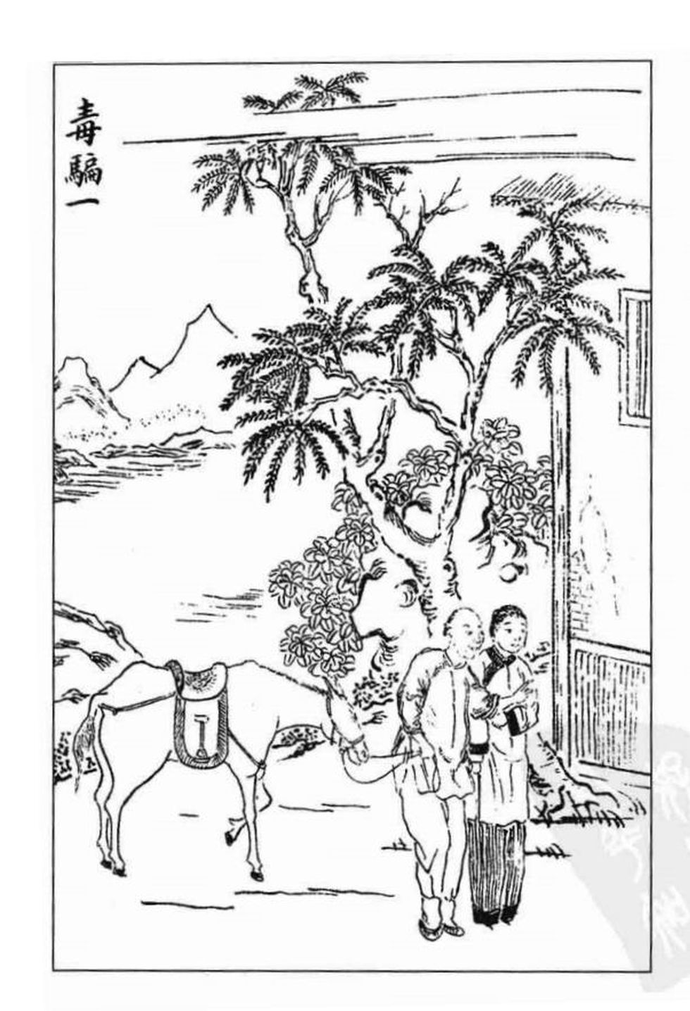 少妇问:“您要到哪里去?”小乙回答说:“回济宁。”少妇又问:“您能顺路带我回去吗?”小乙答应说:“可以。”于是少妇骑上驴,小乙手执鞭子上路了。