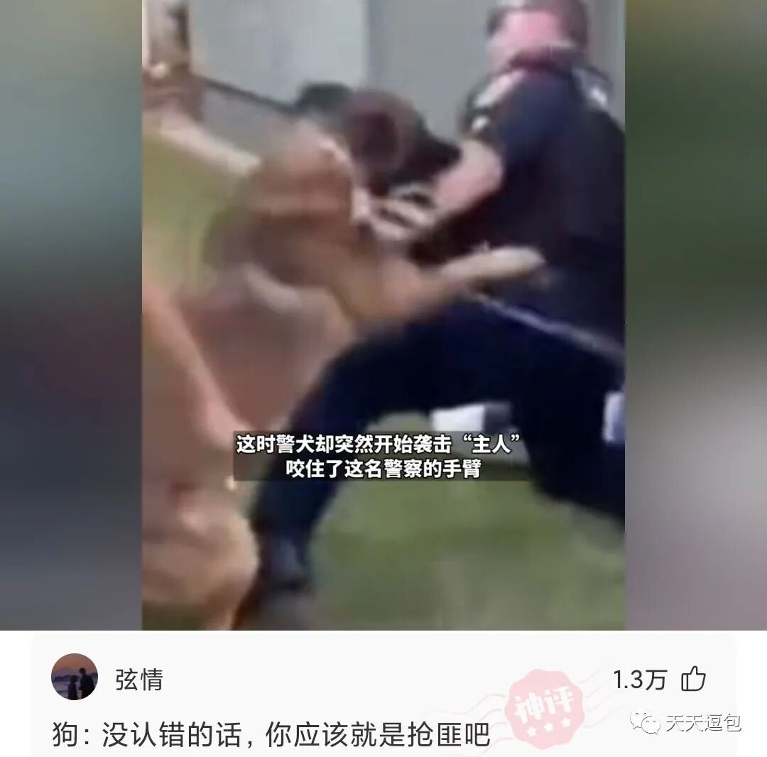 大快人心,美国警察暴力驱赶路人,反被自己的警犬咬手臂!