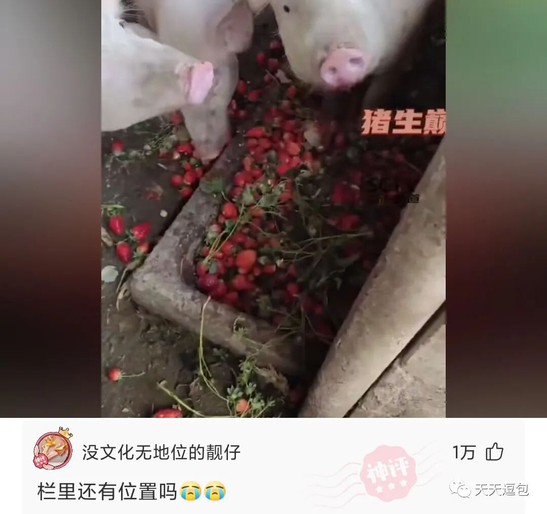 你们这的猪吃得不赖嘛,还吃。。。草莓!