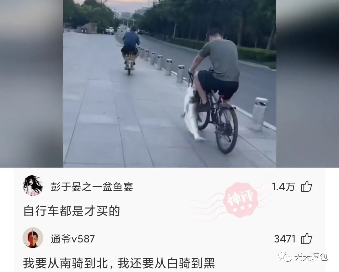 大哥骑自行车一侧拴着大鱼,走在大街上显得格外的瞩目。。。