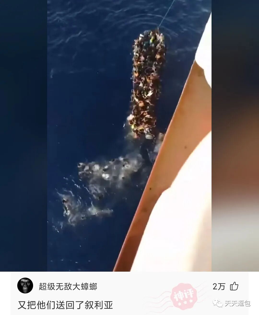 利比亚难民为战逃离家园,海上遇险,被我船营救,118人一个橡皮艇,密密麻麻。。。