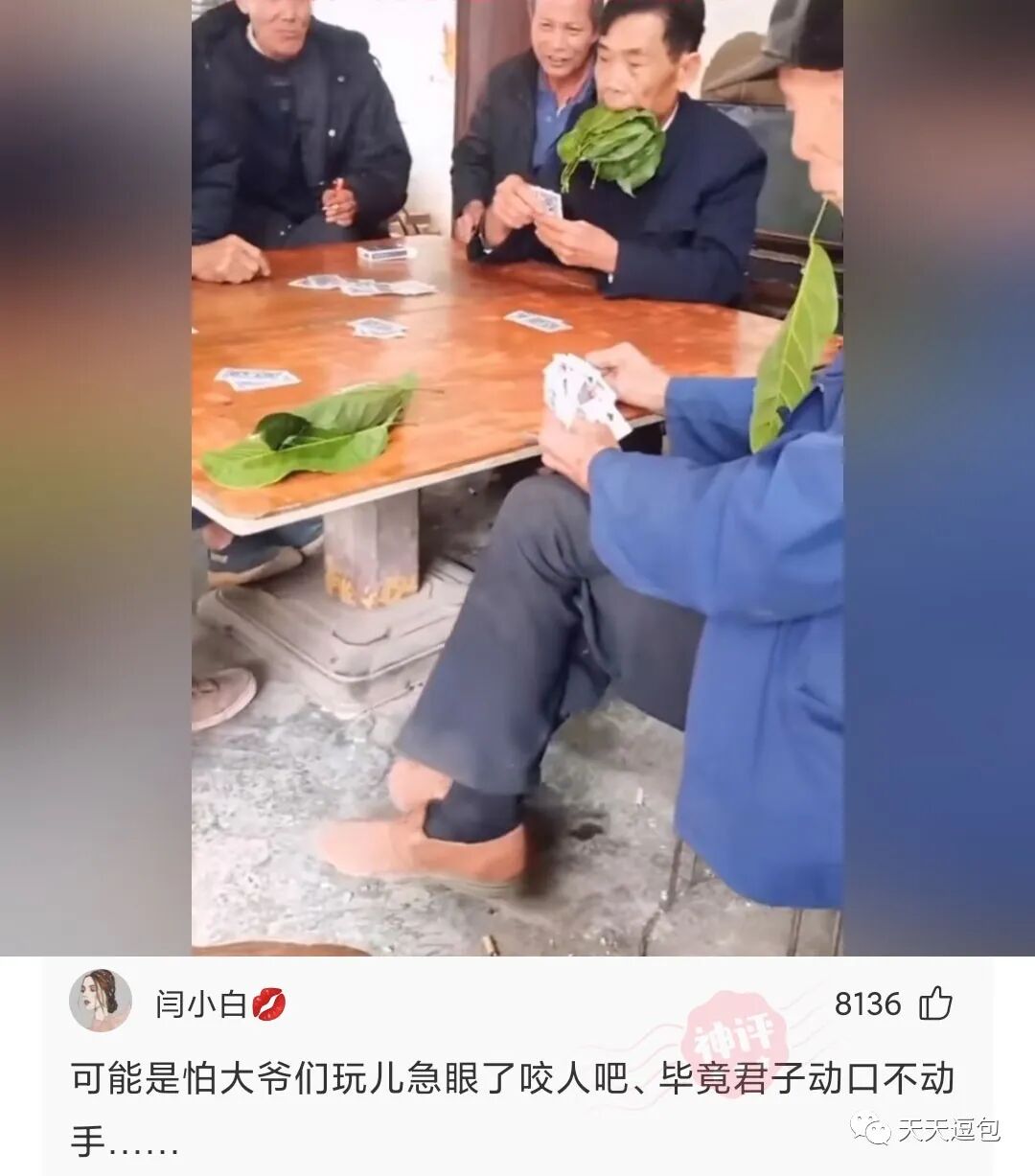 大爷们打牌输了“含树叶”,输的多含的越多,这才是真正的休闲娱乐!