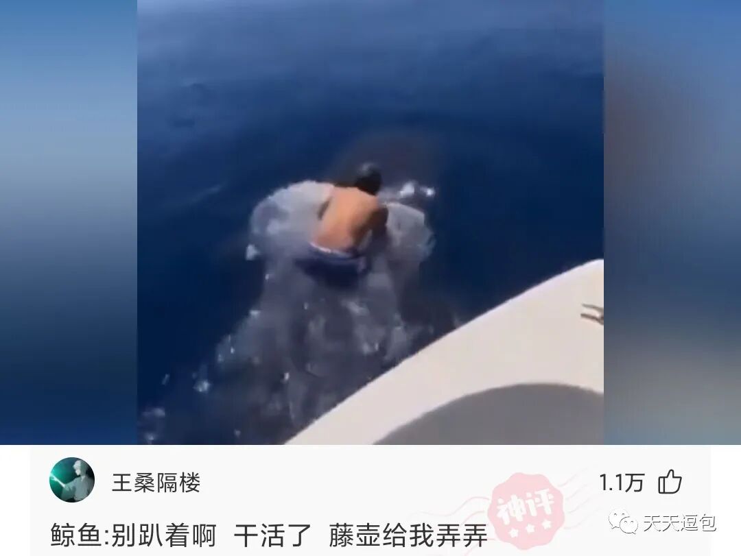 猎奇!男子出海遇鲸鱼,纵身跳至鲸鱼背上。。。