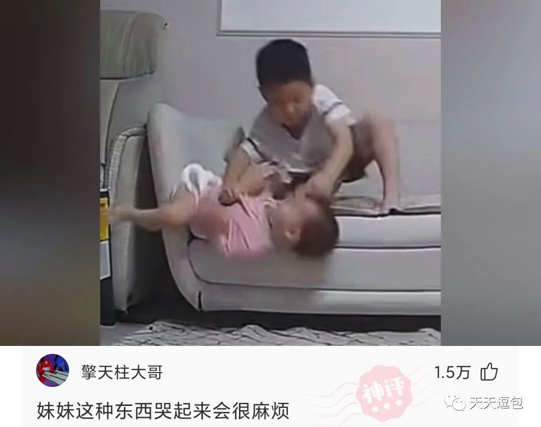 调皮妹妹即将从沙发上掉下去,哥哥一把拉住,展现“哥哥力Max”!