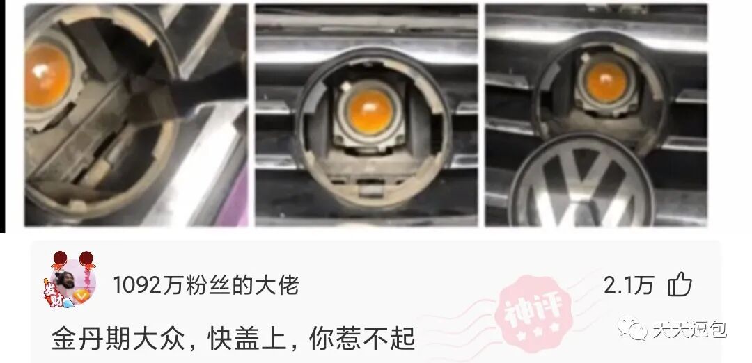 把大众车标抠下来清灰,发现里面藏了一个像蛋黄一样的圆球,谁知道这是个啥?